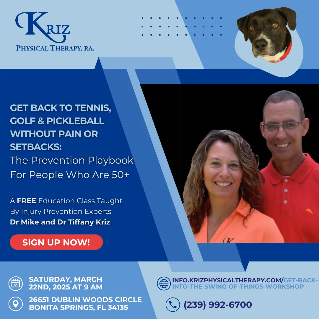 Where: Kriz Physical Therapy, 26651 Dublin Woods Circle, Bonita Springs, FL 34135